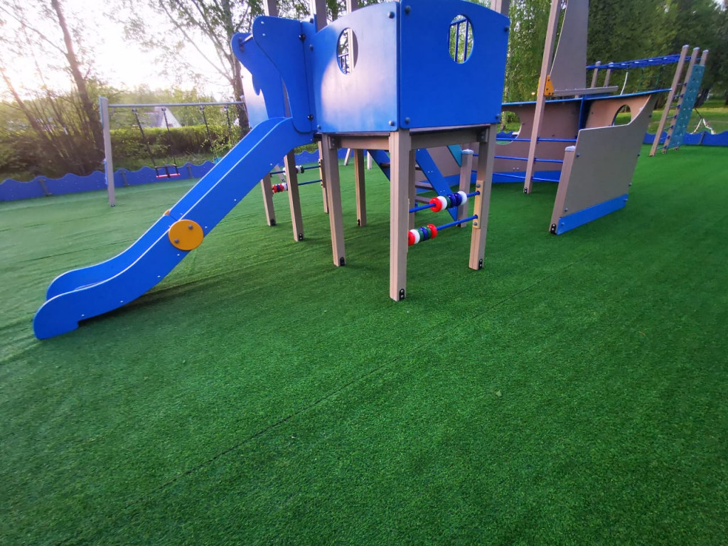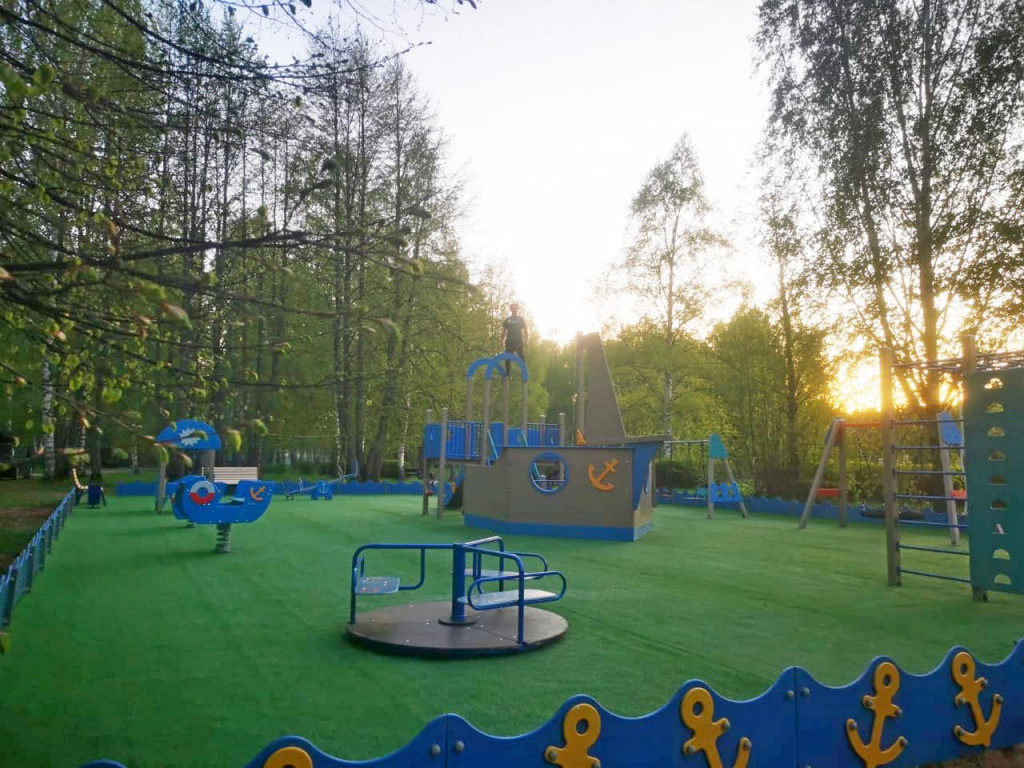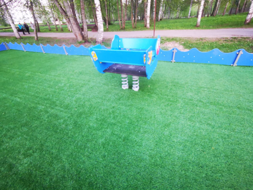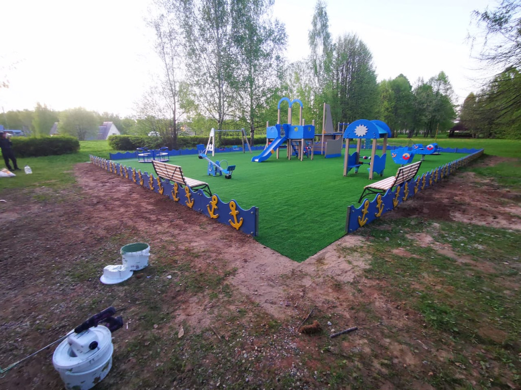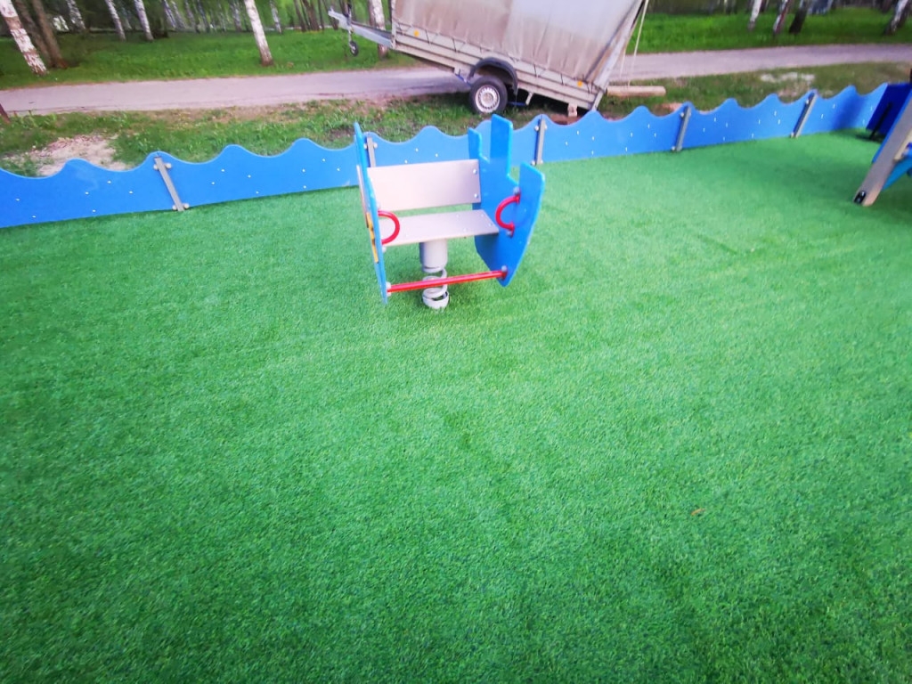 После продолжительных обсуждений с заказчиком принято решение выполнять установку оборудование зимой. Работы сделаны. Но некорректная эксплуатация оборудования сразу после монтажа, зимние холода привели к деформации некоторых спортивно-игровых элементов, газона и ограждения. При наступлении тёплой погоды оценен объём повреждений и выполнены необходимые работы по восстановлению. Все неисправности устранены. Площадка безопасна для использования, имеет привлекательный вид. Она удобна как для активного детского спорта и игр, так и для отдыха взрослых. Всё оборудование органично вписано в экстерьер санатория. Гармонирует общей стилистикой места.
