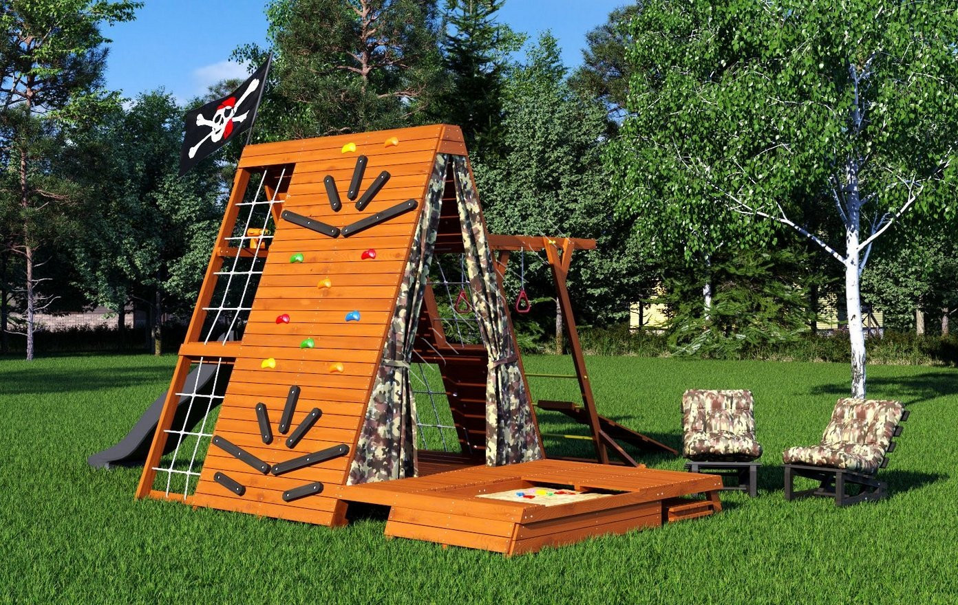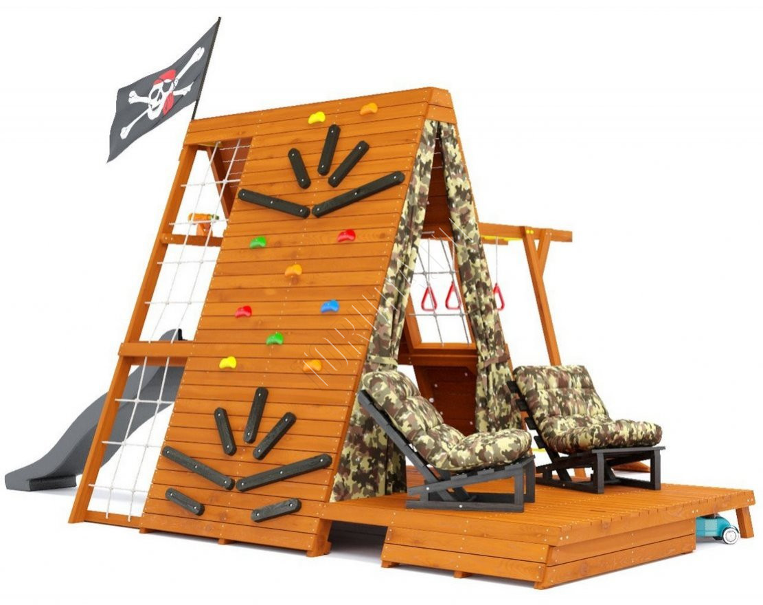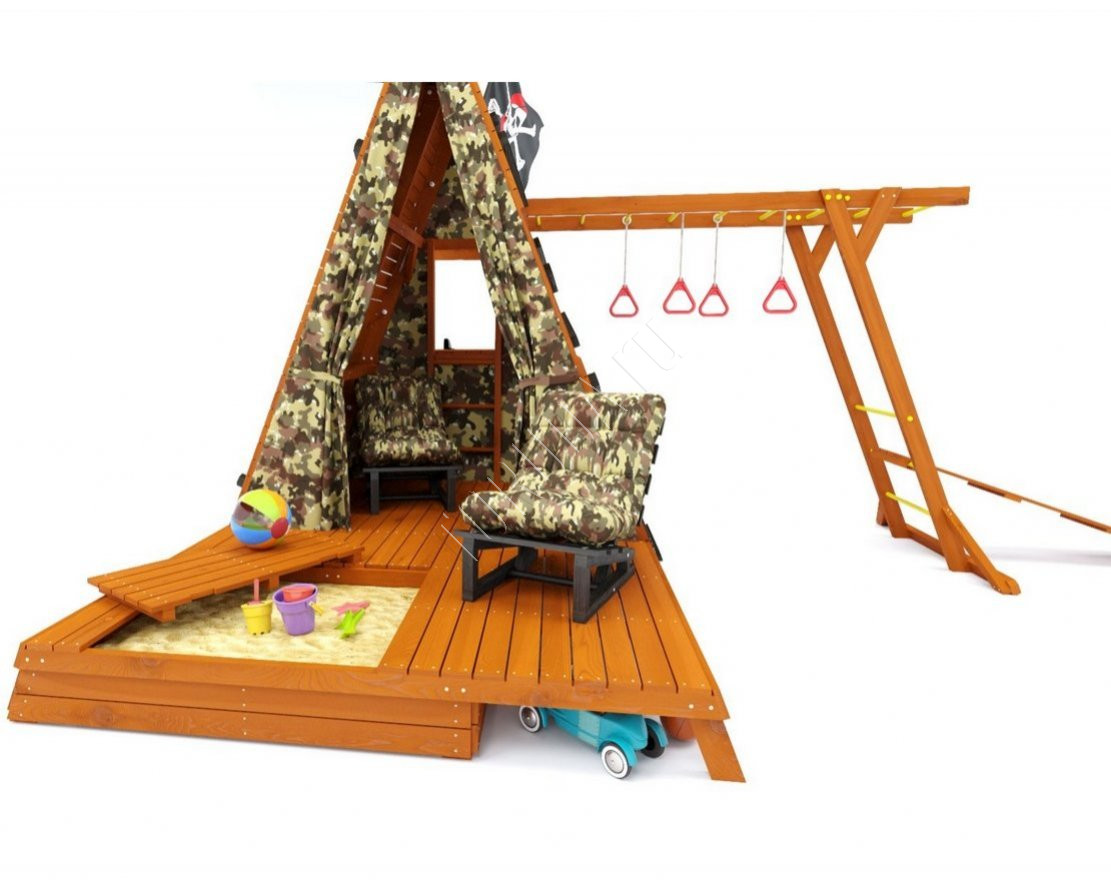 - Одной из особенностей домика являются удобные кресла для отдыха, которые позволят и вам, и вашим детям отдохнуть после игры или занятий спортом. Кресло имеет несколько положений спинки, что позволяет подобрать комфортное положение как для взрослых, так и для детей. В комплекте с площадкой идет 2 кресла.