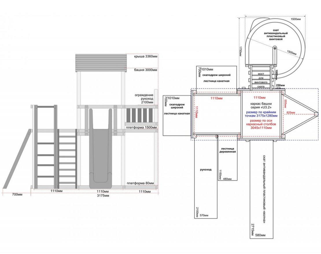 Каждая детская игровая конструкция – конструктор «трансформер», элементы конструкции возможно менять местами - отображать зеркально, при этом важно соблюдать особенности сборки конструкции, правила безопасной эксплуатации конструкции.