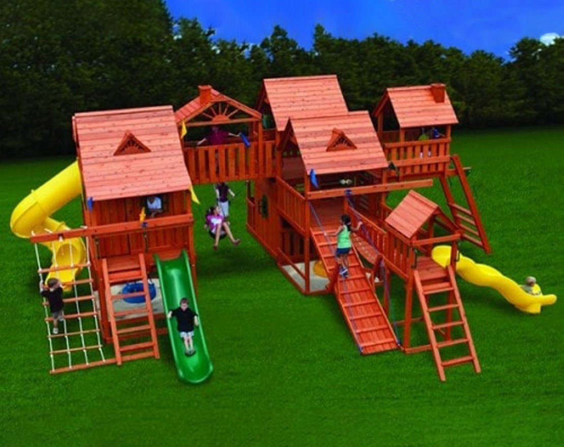 Площадка Столица — самый большой и максимально насыщенный игровыми зонами детский комплекс этой серии, общей площадью 120 м2. Он предоставляет максимум простора для веселья и является флагманом индустрии детских игровых площадок. Игровой комплекс изготовлен из отборных сортов американского кедра и секвойи, которые обладают естественной устойчивостью к гниению, распаду и повреждению насекомыми. В комплектацию входит: семь различных игровых площадок на разных уровнях общей площадью более 19 м2, два встроенных домика с окошками, крыльцом и дверьми, четыре суперпрочные горки различной конструкции, три песочницы и многое другое. Эксклюзивная конструкция мостика соединяет площадки верхнего уровня, а с верхней галереи открывается неповторимый вид.
