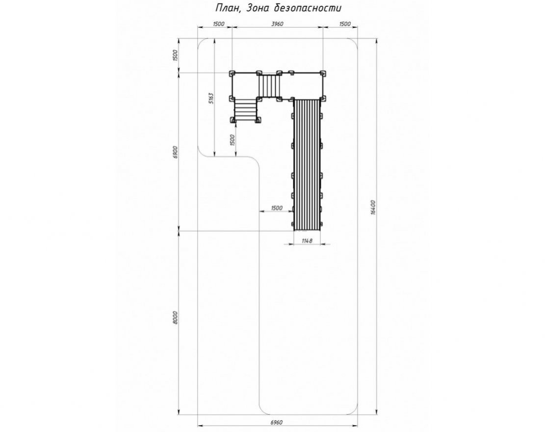 Скат горки шириной 1100 мм, высота стартовой площадки горки 2000 мм, выполнен из досок из хвойных пород толщиной 35 мм, борта выполнены из влагостойкой фанеры толщиной 24 мм, кромки фанеры тщательно шлифованы, борта окрашены с нанесением принта. Опорный каркас ската горки выполнен из доски 35х110 мм. Длина ската 6000 мм.