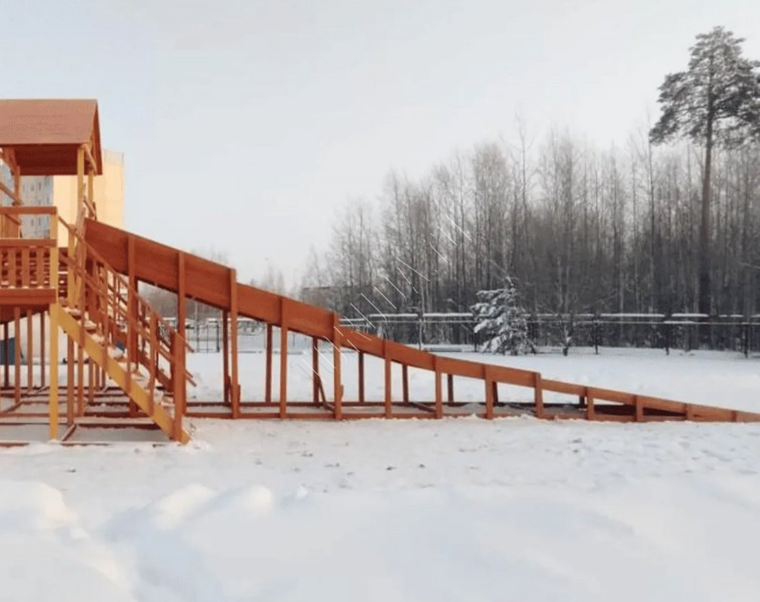 Активные дети готовы проводить время на свежем воздухе даже зимой. А деревянная горка «TORUDA Север» - 11 – лучшее сезонное предложение для просторных спортивно-игровых площадок.