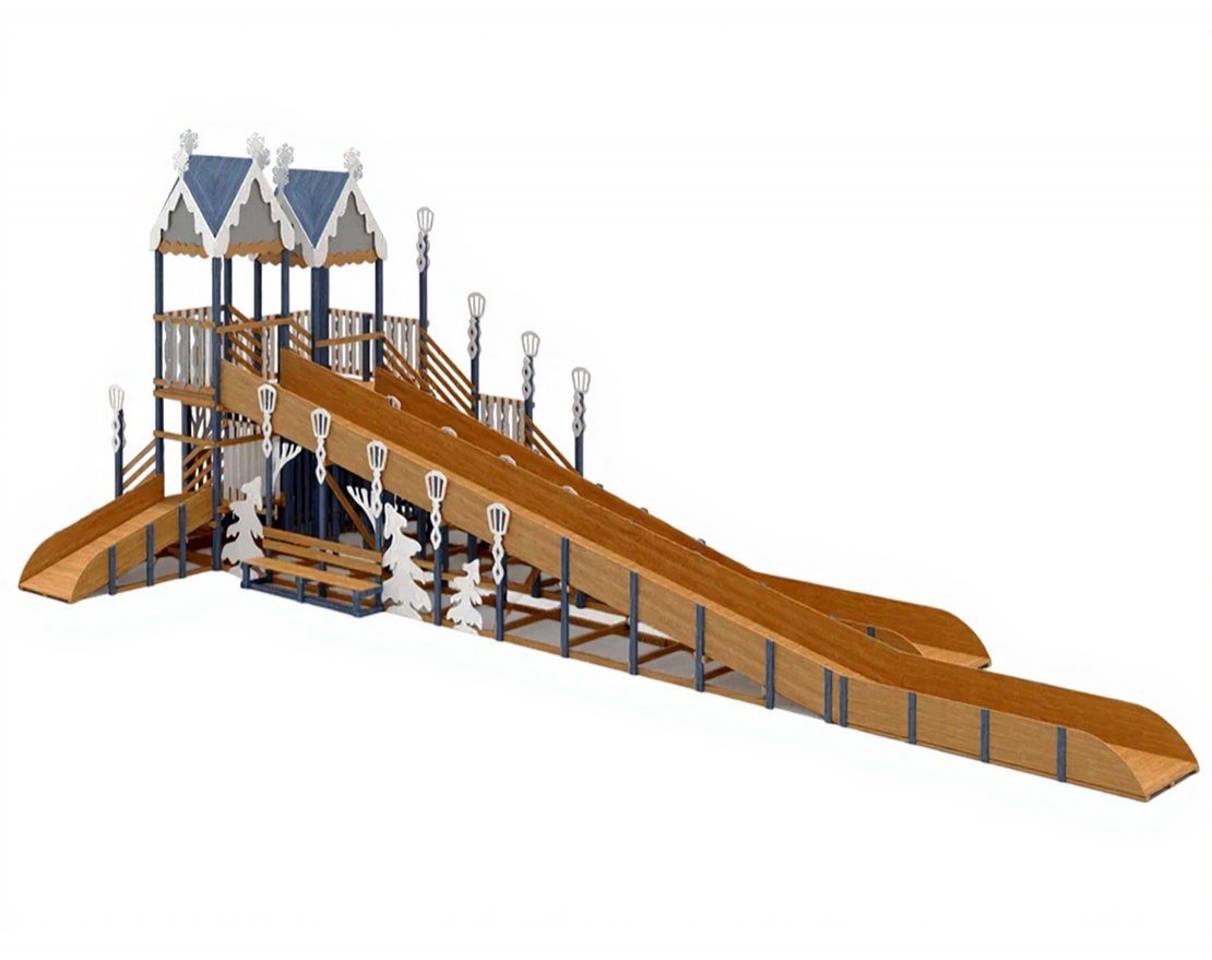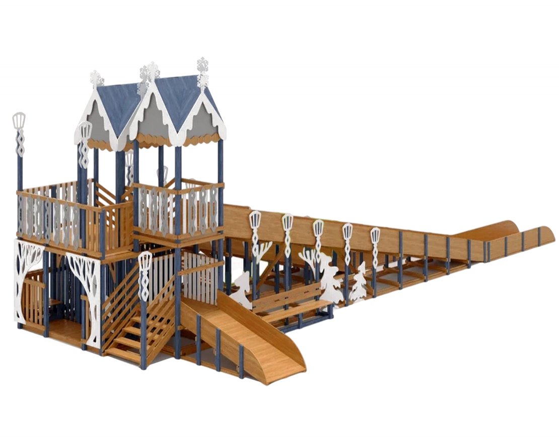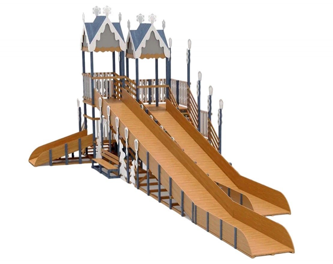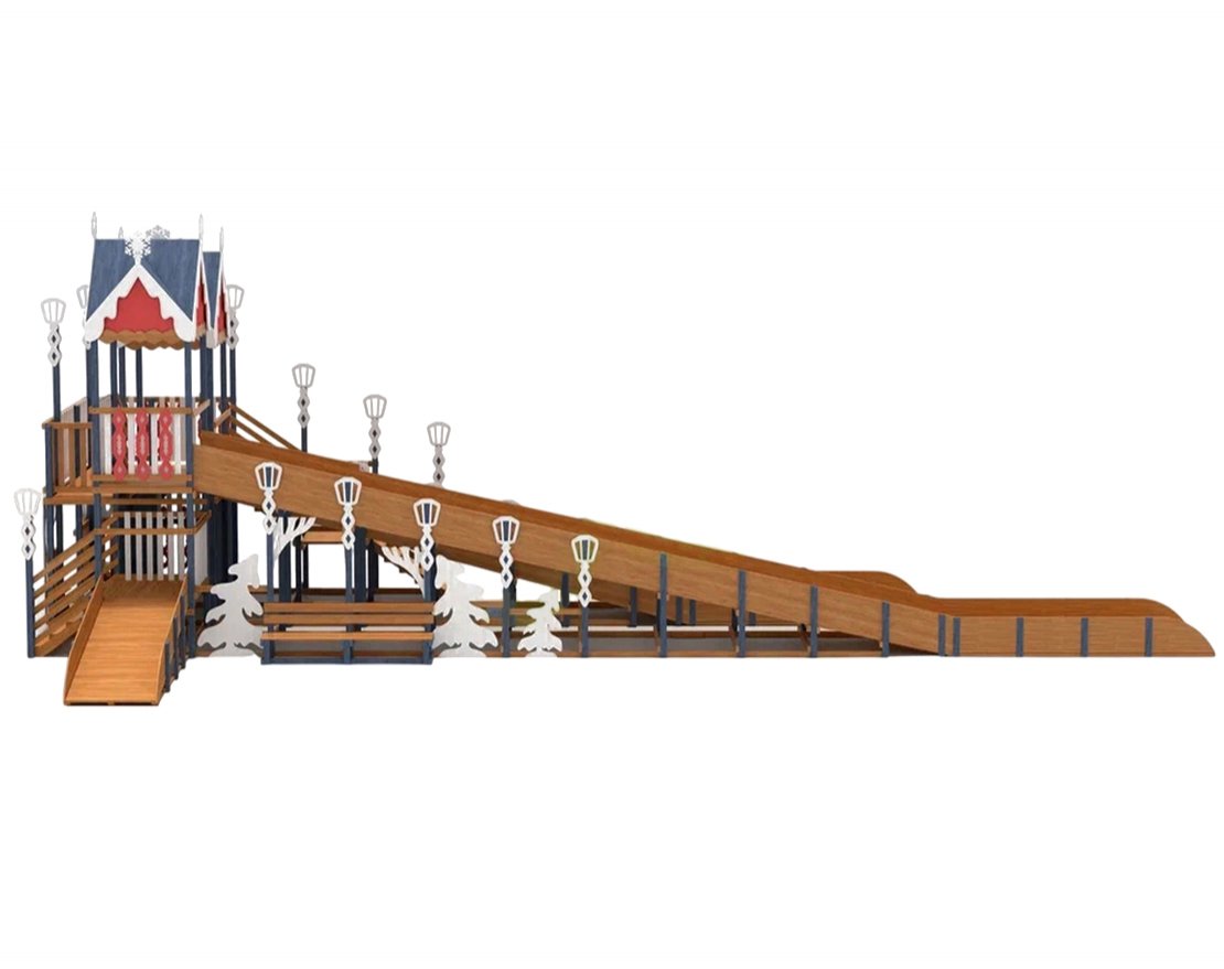 Эта горка — идеальное воплощение зимней сказки, которое станет украшением парка или вашего участка в морозное время года. Удивительный дизайн с множеством декоративных элементов создадут атмосферу настоящего зимнего волшебства.