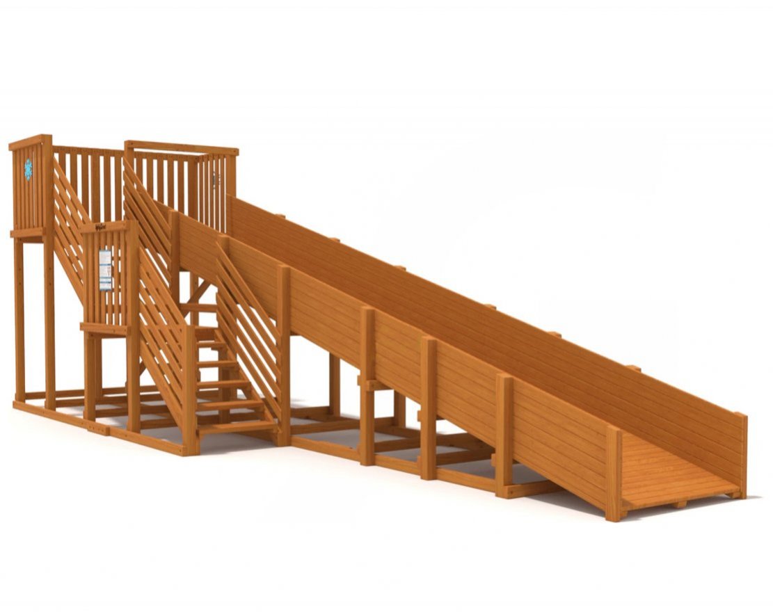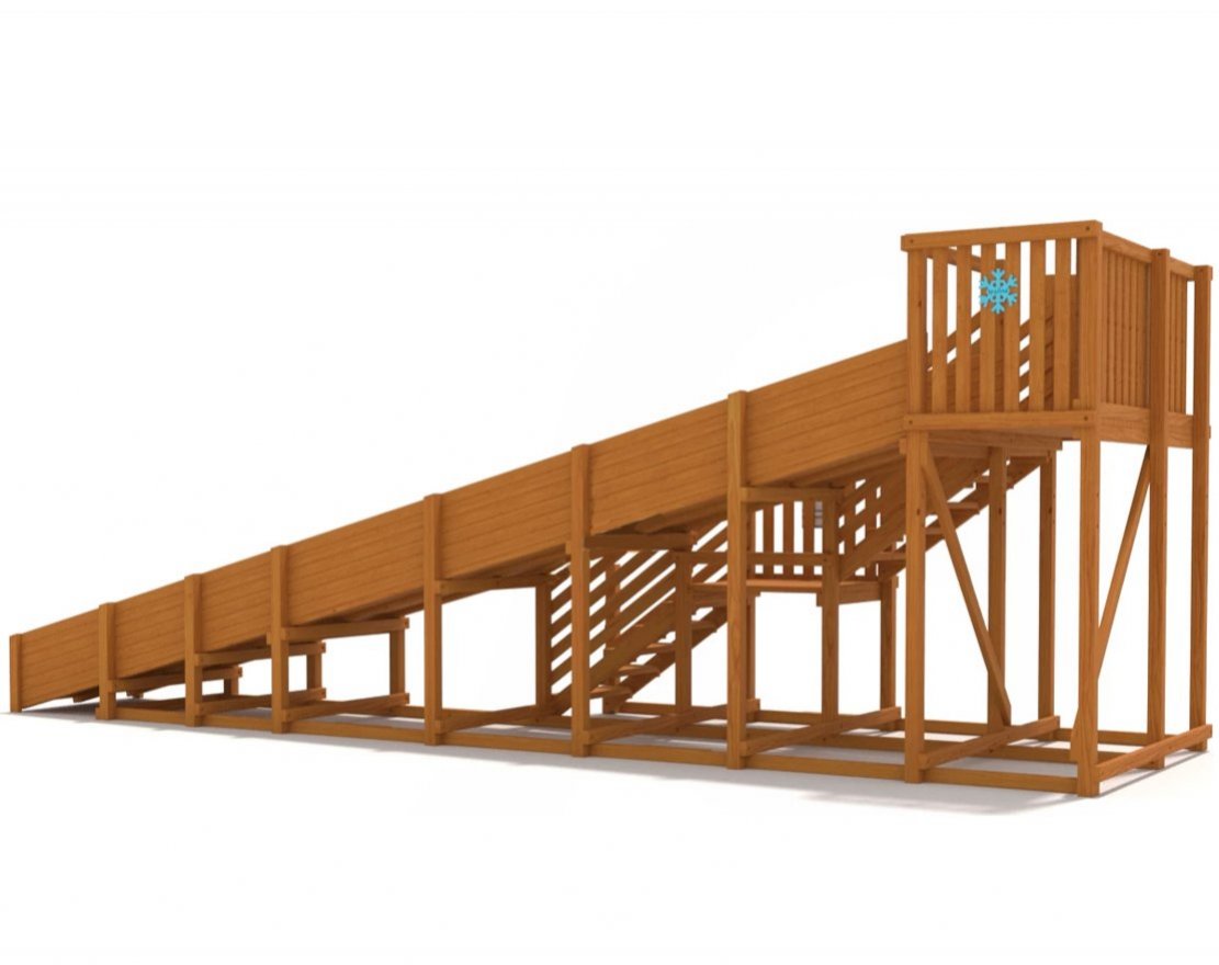 Детская заливная зимняя горка Snow Fox (скат 8 м) – несущая деревянная конструкция с усиливающими балками. Она имеет скат длиной 8,0 м, а шириной – 1,28 м. Скат достаточно просторный, поэтому ребятам будет удобно с него скатываться в объёмной тёплой одежде. Скат заливается холодной водой при минусовой температуре, после чего горка готова к эксплуатации.