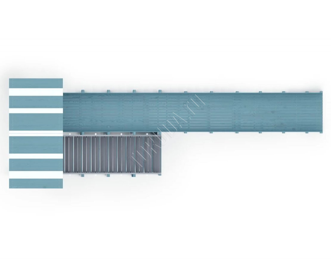 Конструкция надёжна и устойчива, выполнена из клееного бруса сечением 90×90 мм. Все поверхности тщательно шлифуются, углы скруглены, а бортики и прочные перила обеспечивают максимальную безопасность.