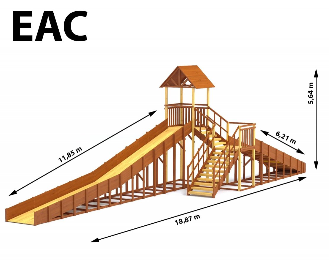 Каркас модели сделан из надежного клееного бруса, который отлично выдерживает любые погодные условия, сохраняя безупречную геометрию на протяжении многих лет. Поверхность дополнительно защищена от осадков экологичным лакокрасочным покрытием с разрешающим сертификатом, допускающим применение состава для детских комплексов.