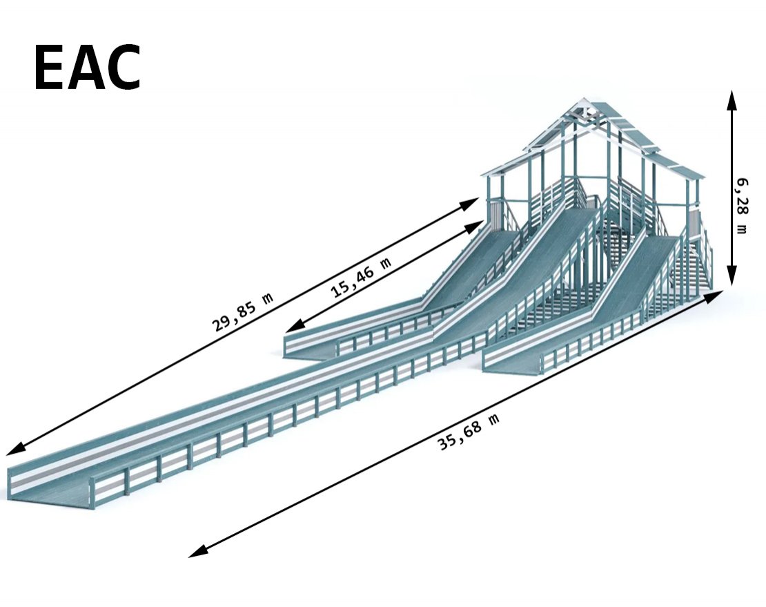 Три мощных ската длиной до 30 метров, которые превращают любую площадку в центр зимнего веселья! Прочная двухуровневая конструкция, широкие лестницы и высокие ограждения делают катание максимально безопасным.