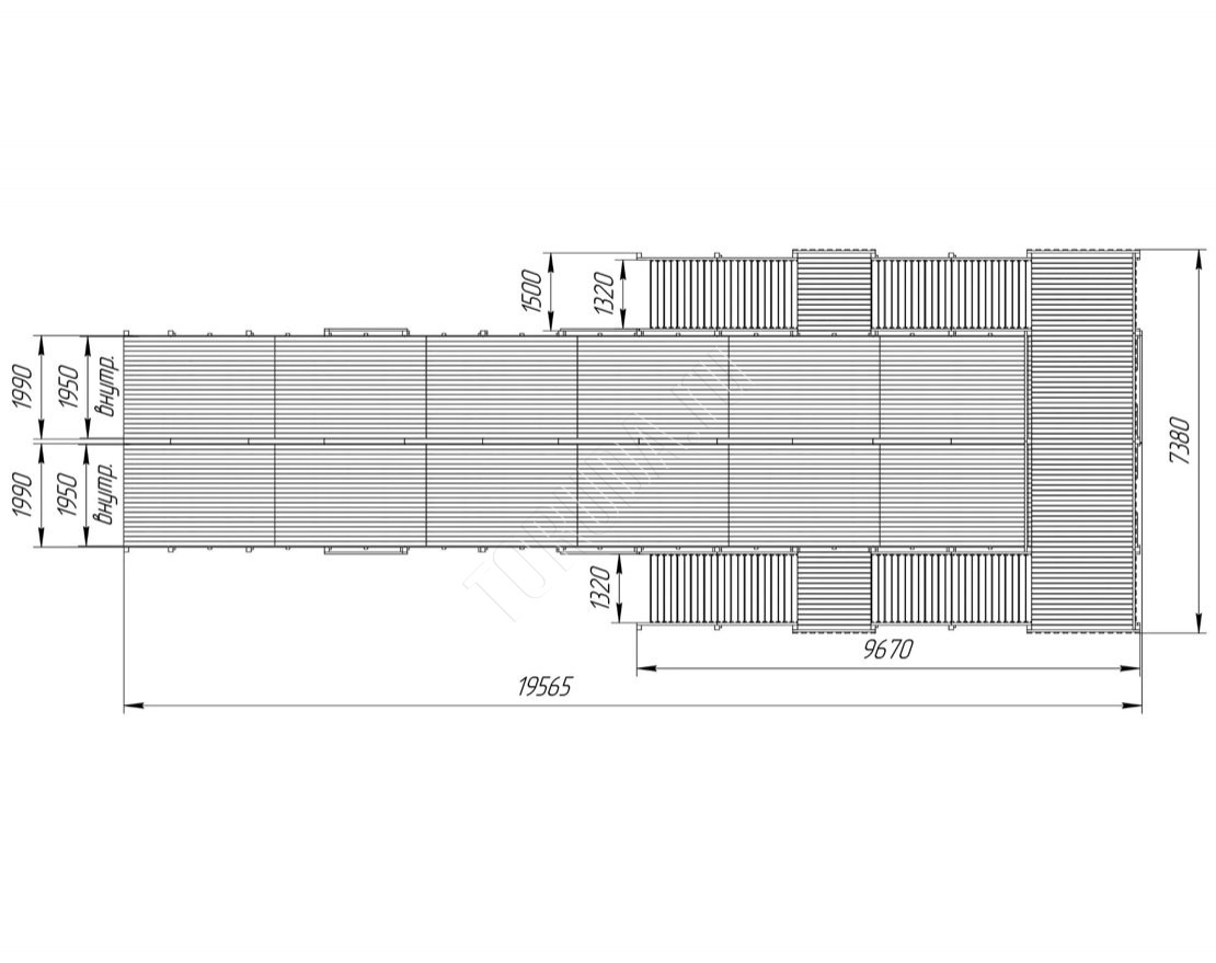 Каркас выполнен из клеёного бруса камерной сушки, все поверхности тщательно отшлифованы, углы скруглены, а крепежи закрыты заглушками.