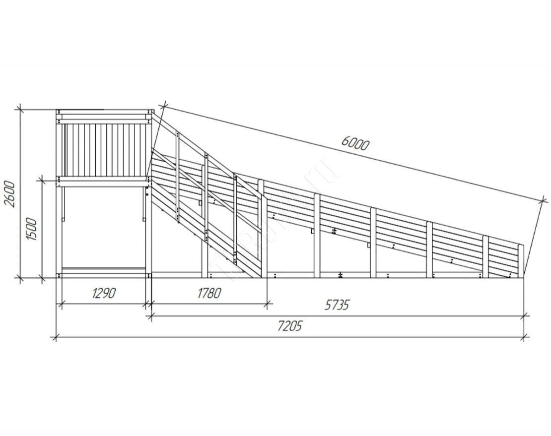 Зимняя горка с двумя длинными скатами по 6 метров, на которых дети смогут кататься без остановки. Конструкция выполнена из прочного клееного бруса