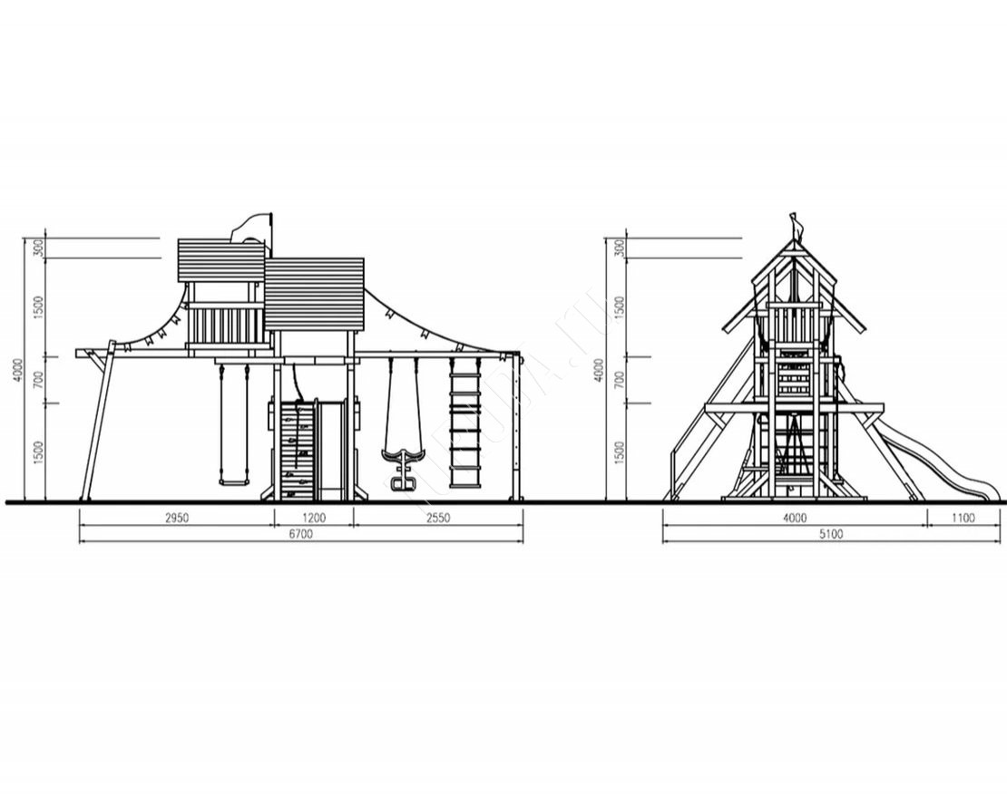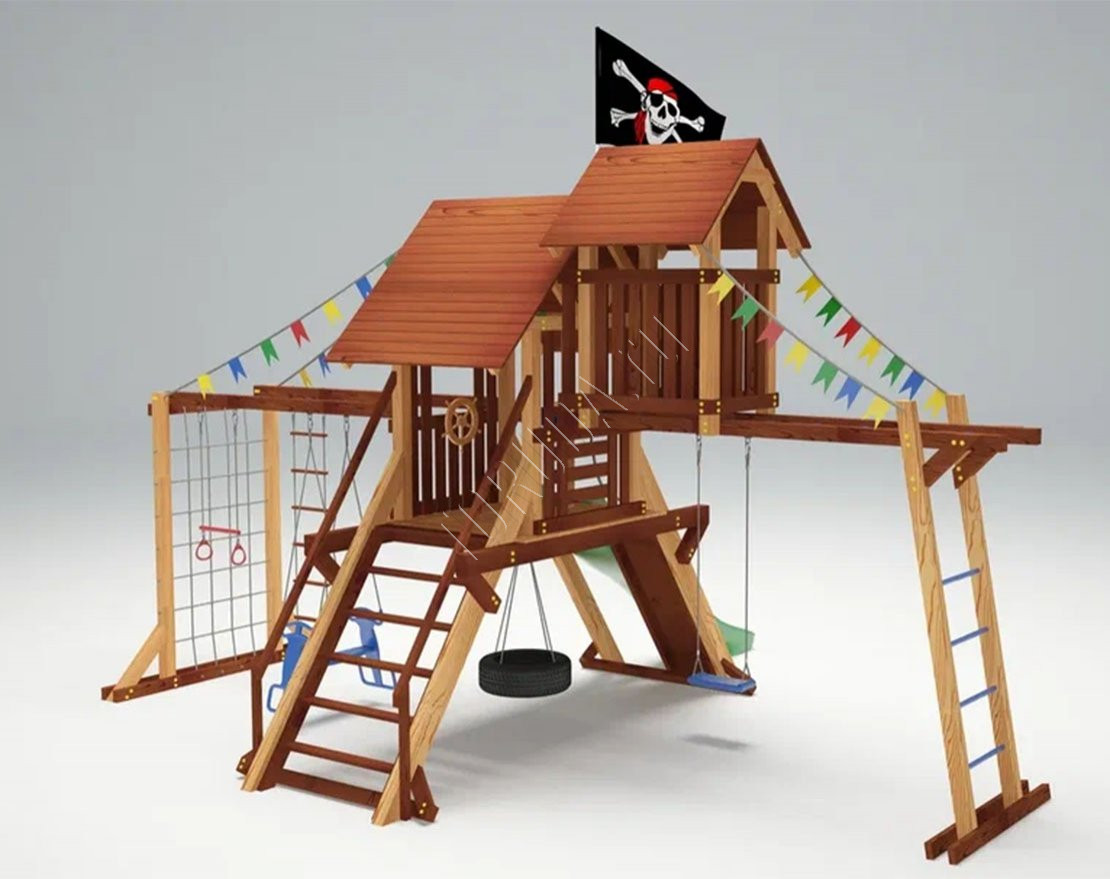 Площадка Галиот 9 обладает довольно широким функционалом (который по желанию можно легко расширить). А на качелях могут кататься даже родители! Детская площадка предназначена для дачи, коттеджа.