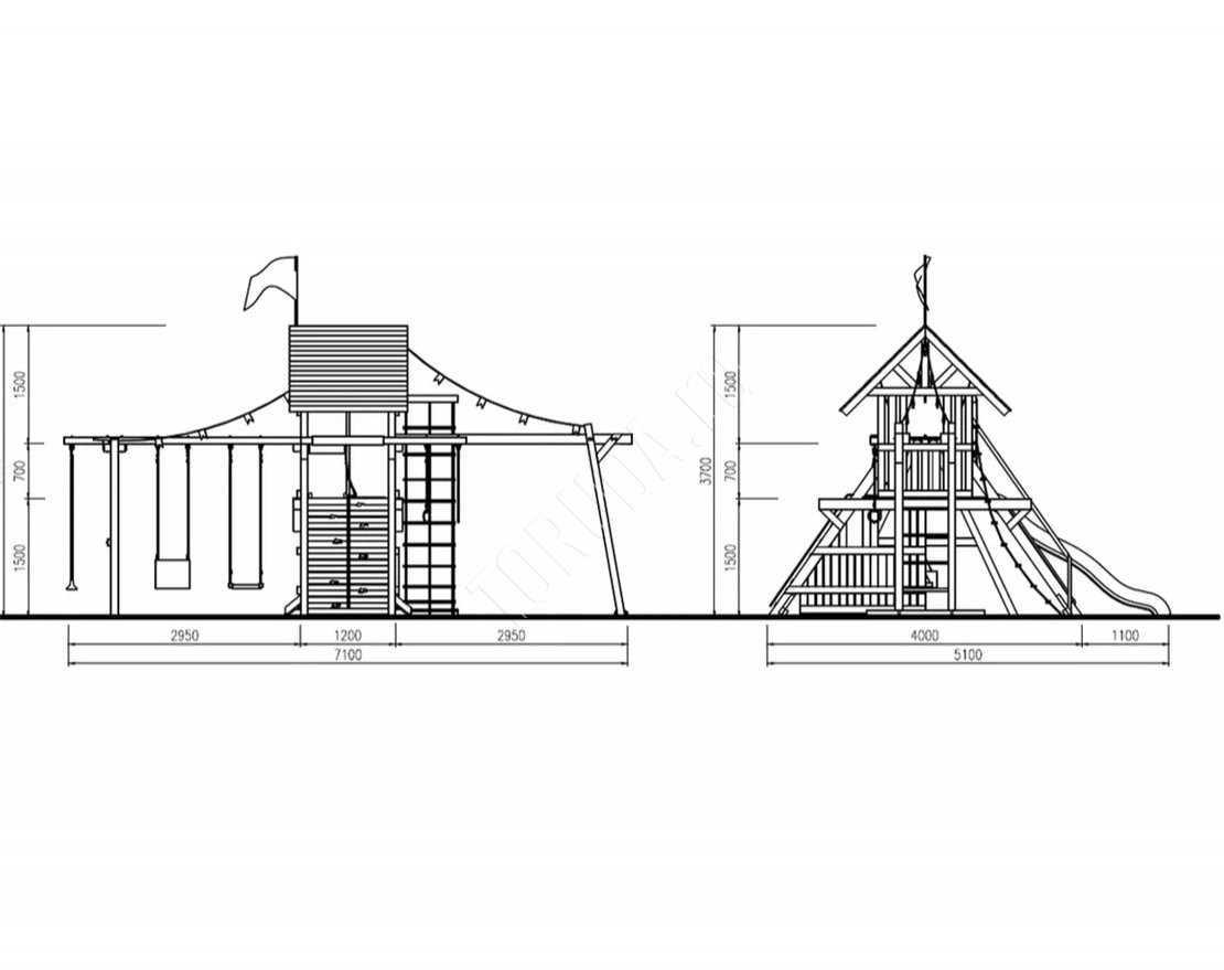 Площадка Галиот 3 обладает довольно широким функционалом (который по желанию можно легко расширить). А на качелях могут кататься даже родители! Детская площадка предназначена для дачи, коттеджа.