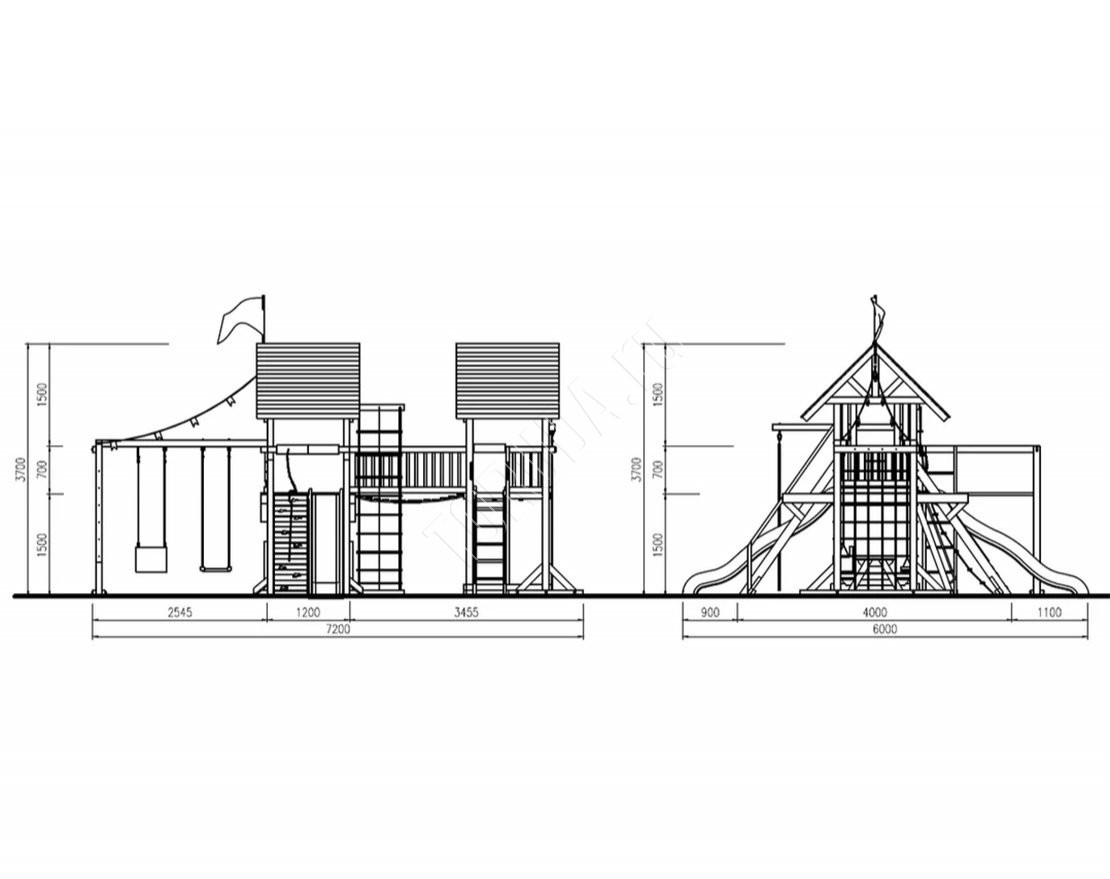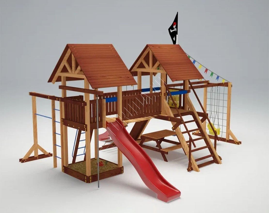 Площадка Галиот 8 обладает довольно широким функционалом (который по желанию можно легко расширить). А на качелях могут кататься даже родители! Детская площадка предназначена для дачи, коттеджа.