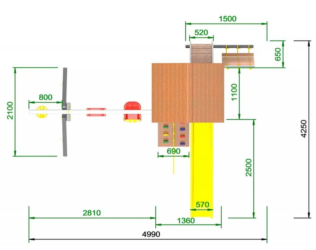 верёвочная лестница, канат, качели, песочница, горка, скалодром, тарзанка, лестница, перекладина для навесного оборудования |