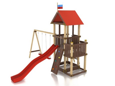 Для максимальной защиты ребёнка от травм, все углы имеют закруглённую форму, крепеж надежно скрыт пластиковыми заглушками. Опоры изготовлены из клееного бруса толщиной 90*90 мм.