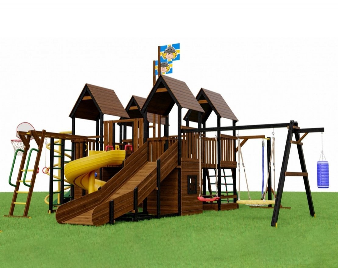 Эта площадка органично впишется в любой ландшафт и подарит детям любимое место для игр в любое время года!