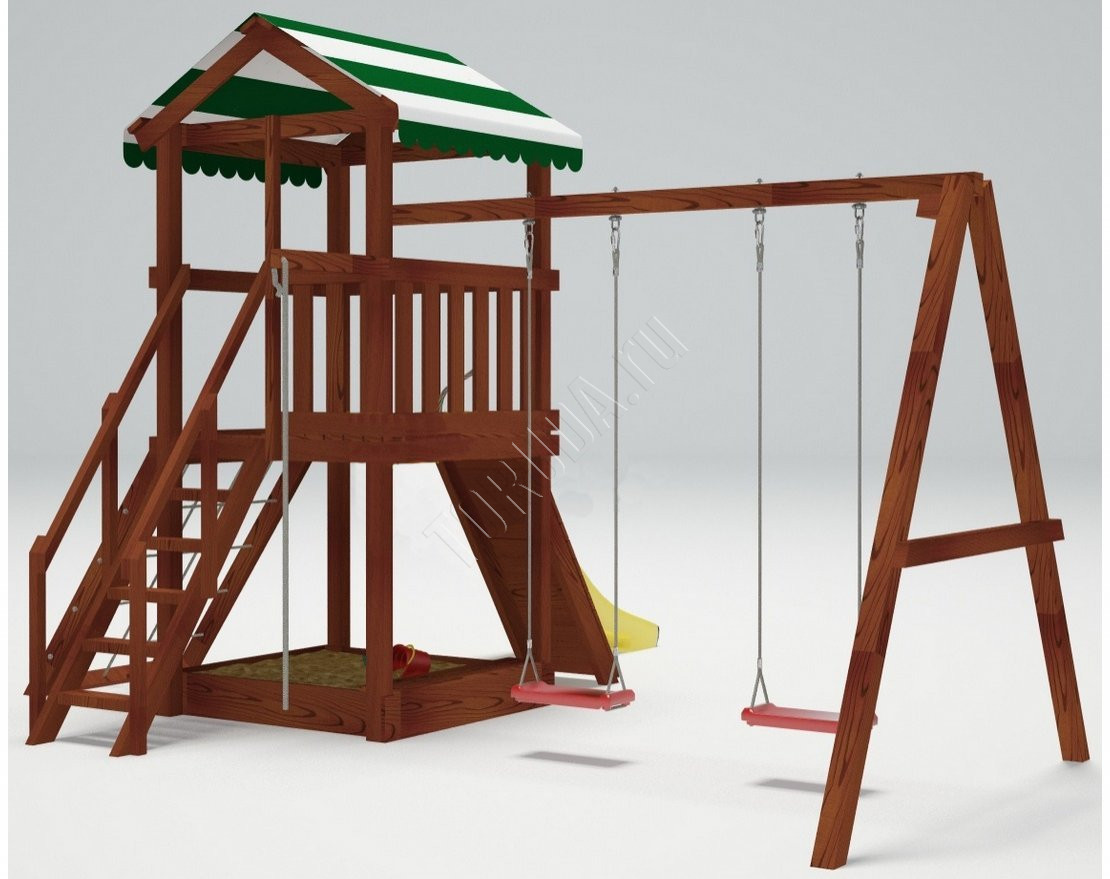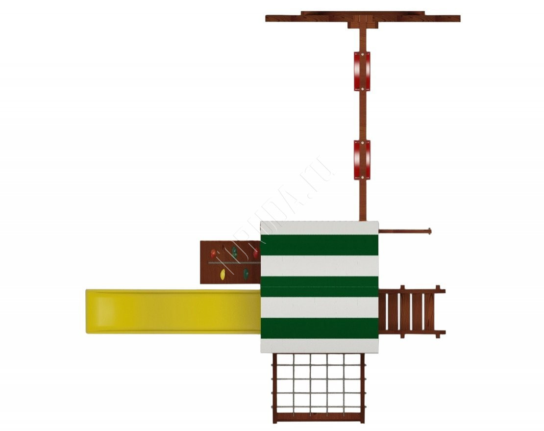 - Безопасность и надёжность: конструкция выполнена из качественных натуральных материалов, устойчивых к погодным условиям. Болтовые соединения закрыты защитными заглушками, а все элементы комплекса проходят строгий контроль качества.