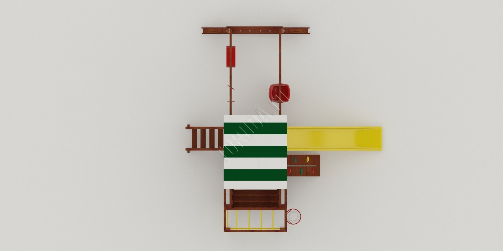 Укреплять мышечный каркас нужно с детства, бросая мяч в баскетбольное кольцо, вися на турнике и кольцах, карабкаясь по шведской стенке, канату, сетке-лазалке. Все это многообразие спортивных снарядов присутствует в Гарда 4 Бри. Для большей радости качели «Лодочка» и «Люкс» со спинкой.