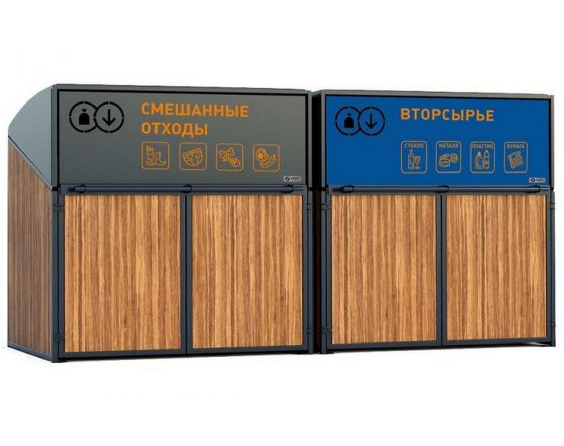 В данный контейнерный шкаф вмещается один большой контейнер объемом 1100 л. Либо один стандартный контейнер на 600-800 л, либо два контейнера до 360 литров.