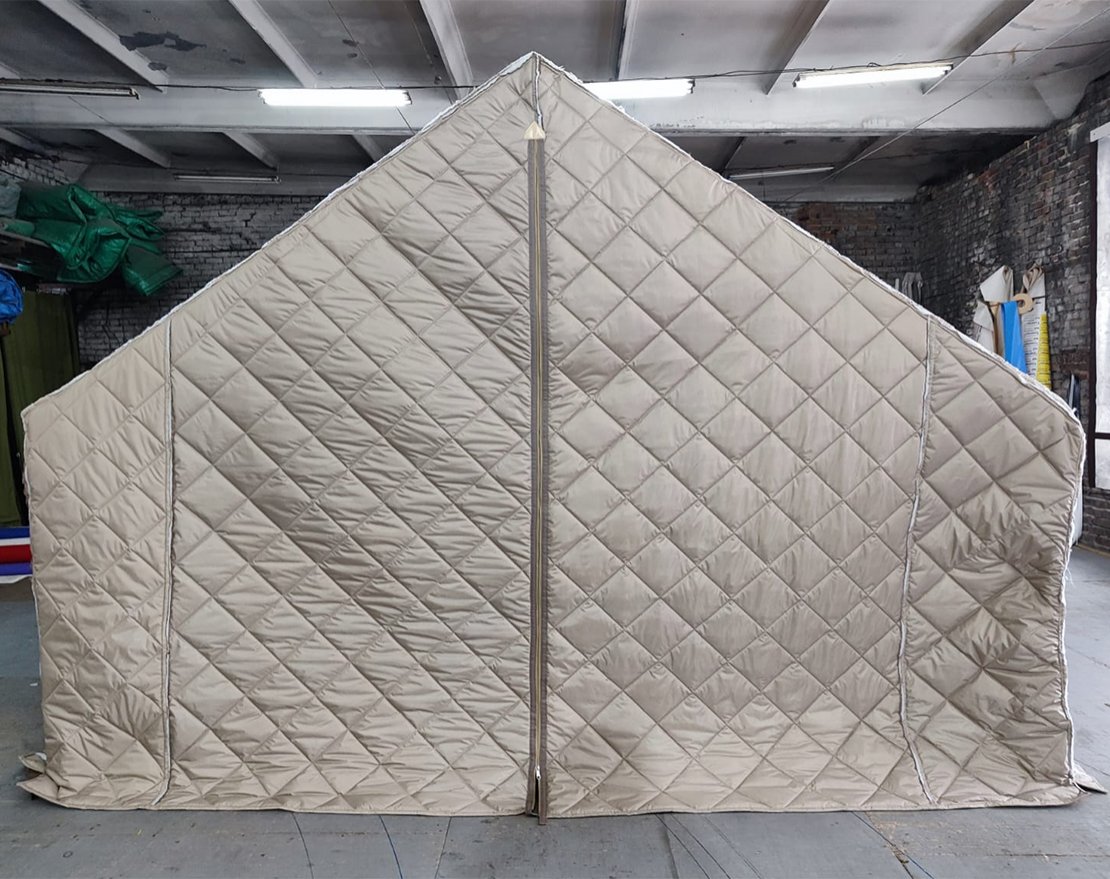 Всесезонный вариант исполнения — это утеплённая версия летней палатки. Утепление обеспечивается за счёт «тёплых стен», которые крепятся на каркасе внутри основной палатки, изготовлен на основе стеганного Оксфорда + синтепона 3см.
